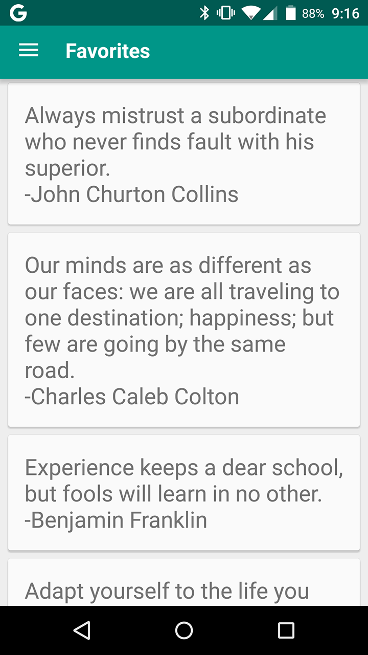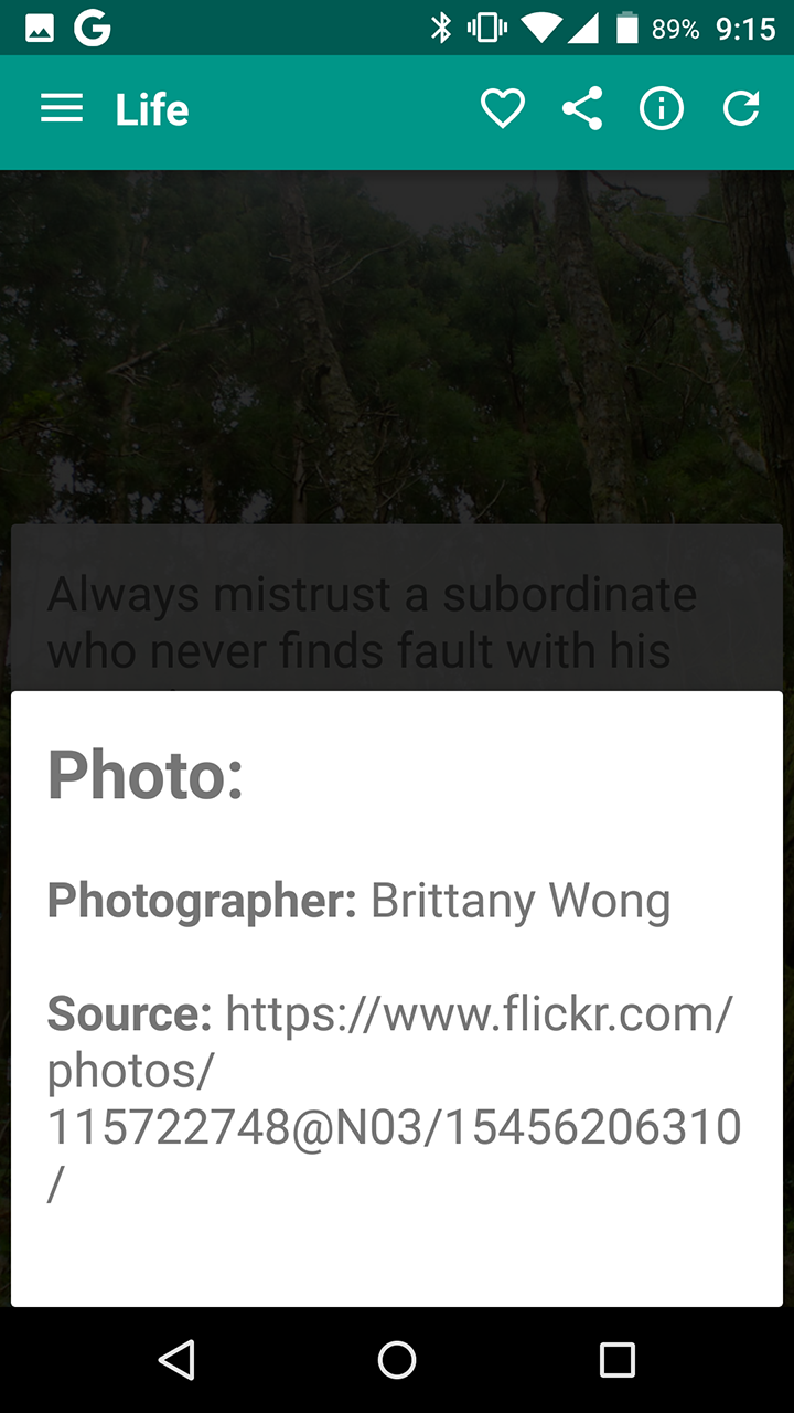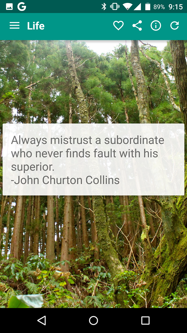 This app let's you start your day with words of inspiration. You can choose different styles of quotes from love to happiness. It uses a php web service to download today's quotes and images from a mysql server.